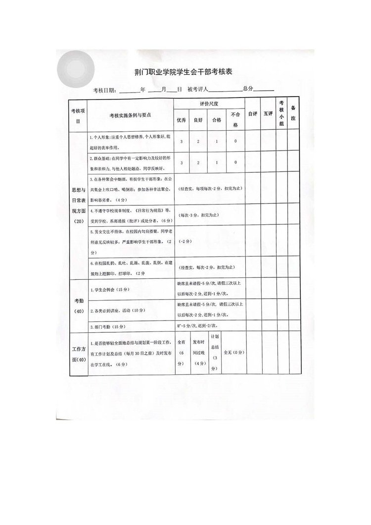 八、校級組織工作人員述職評議工作實施辦法