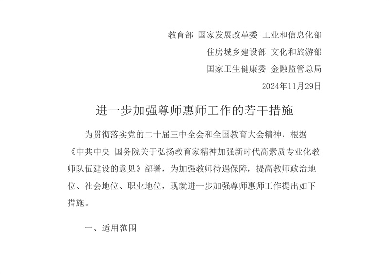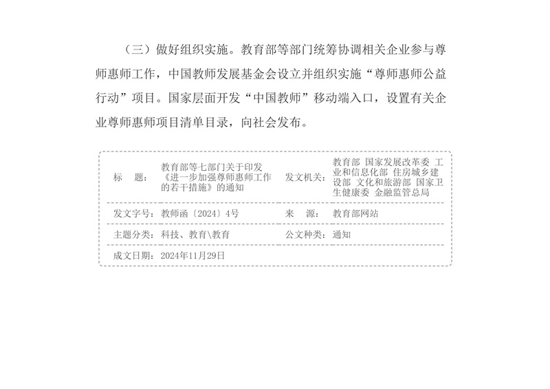 教育部等七部門關(guān)于印發(fā)《進一步加強尊師惠師工作的若干措施》的通知