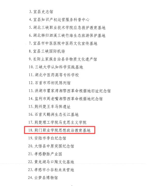 近日,湖北省社會科學界聯(lián)合會公布了2024年度省級社科普及基地命名名單,荊門職業(yè)學院思想政治教育基地成功入選。此次全省共有48家單位獲此稱號,標志著我校在社會科學普及與思想政治教育方面取得了重要突破。