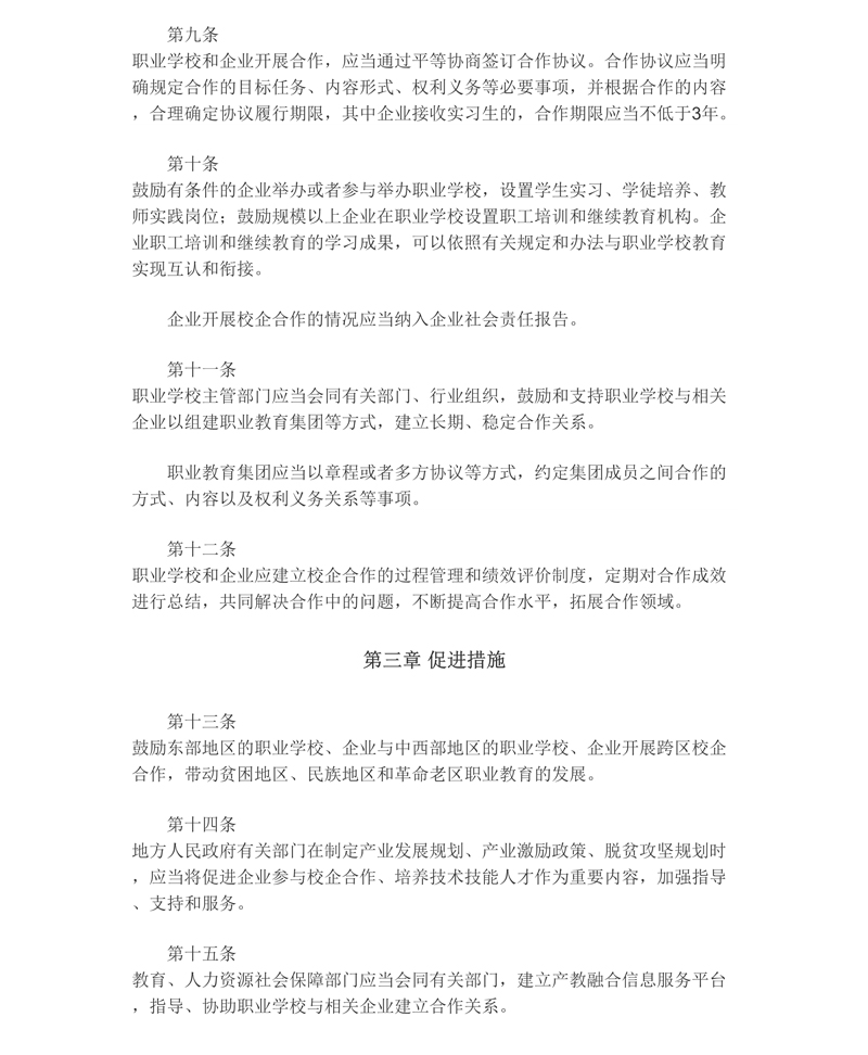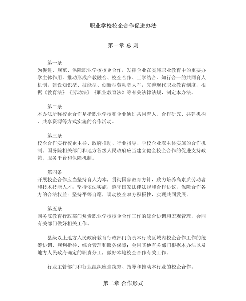 教育部等六部門關于印發(fā)《職業(yè)學校校企合作促進辦法》的通知