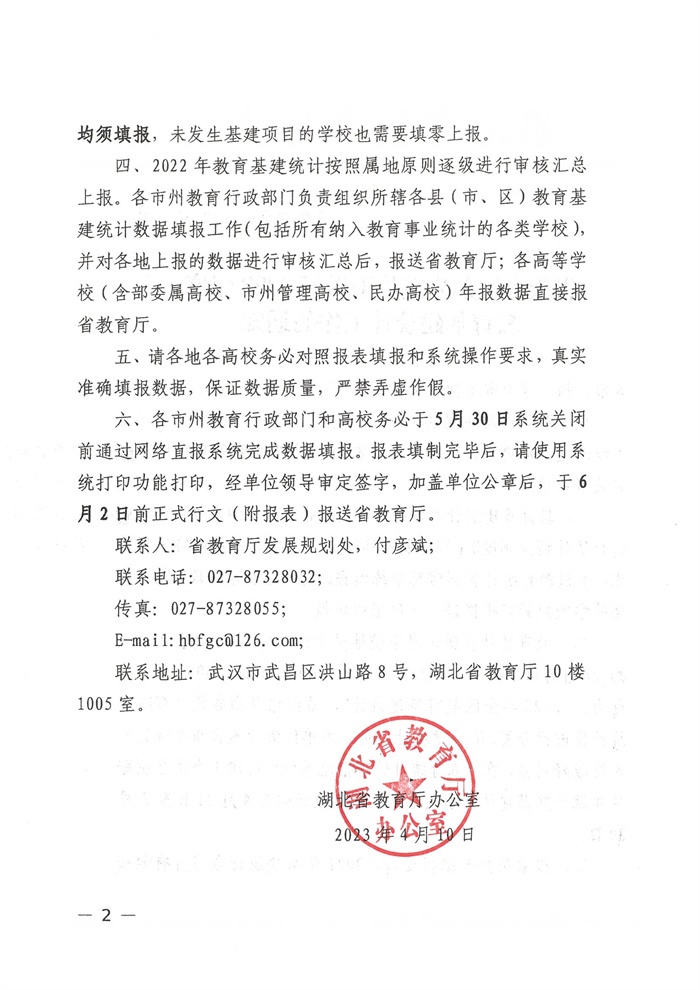 省教育廳辦公室關于報送2022年度教育基建統(tǒng)計年報的通知