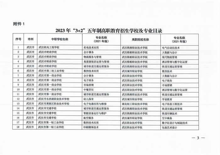 省教育廳辦公室關(guān)于公布2023年五年制高等職業(yè)教育招生學(xué)校和專業(yè)目錄的通知(鄂教職成辦函〔2023〕1號(hào))