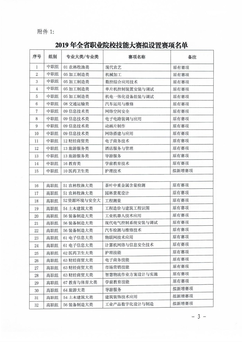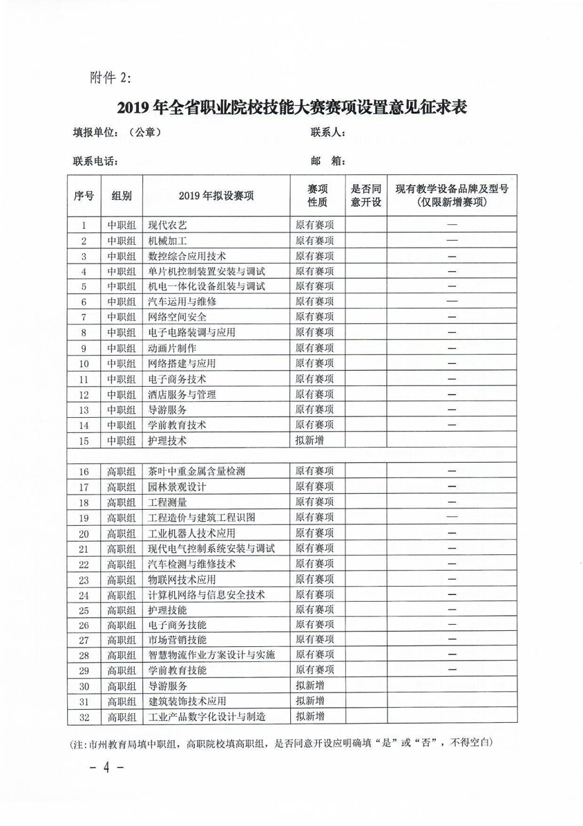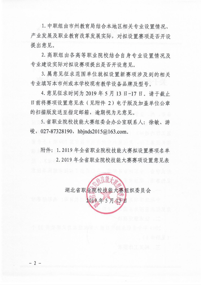 關(guān)于征求2019年全省職業(yè)院校技能大賽賽項設(shè)置意見的通知(鄂教職賽函〔2019〕6號)