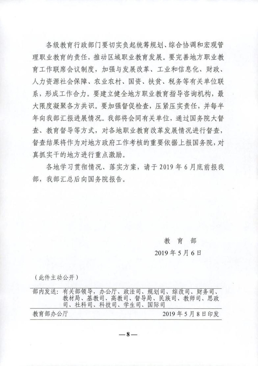 附件:教育部關(guān)于深入學(xué)習(xí)貫徹《國(guó)家職業(yè)教育改革實(shí)施方案》的通知教職成〔2019〕11號(hào)
