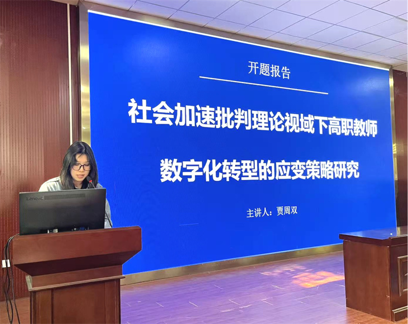 市教育科學(xué)規(guī)劃課題《社會(huì)加速批判理論視域下高職教師數(shù)字化轉(zhuǎn)型的應(yīng)變策略研究》負(fù)責(zé)人賈周雙老師進(jìn)行匯報(bào)