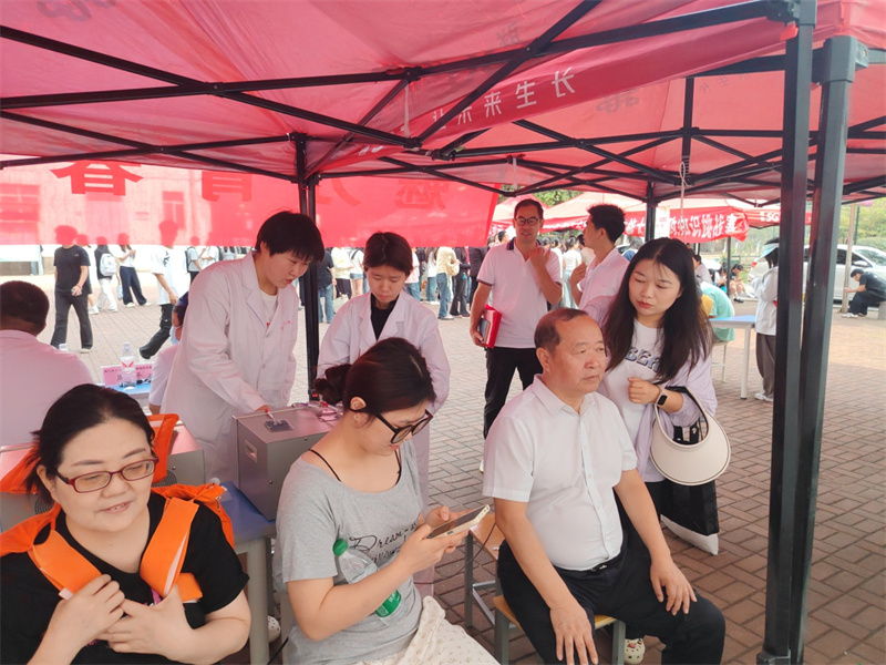 活動現(xiàn)場人頭攢動,師生們有序排隊參與各項檢查與咨詢,專家們的專業(yè)解答和貼心服務獲得一致好評。醫(yī)學院黃琪老師對前來義診的師生講解定期檢查身體的重要性,鼓勵他們要樹立積極樂觀的生活態(tài)度,養(yǎng)成健康的生活習慣。